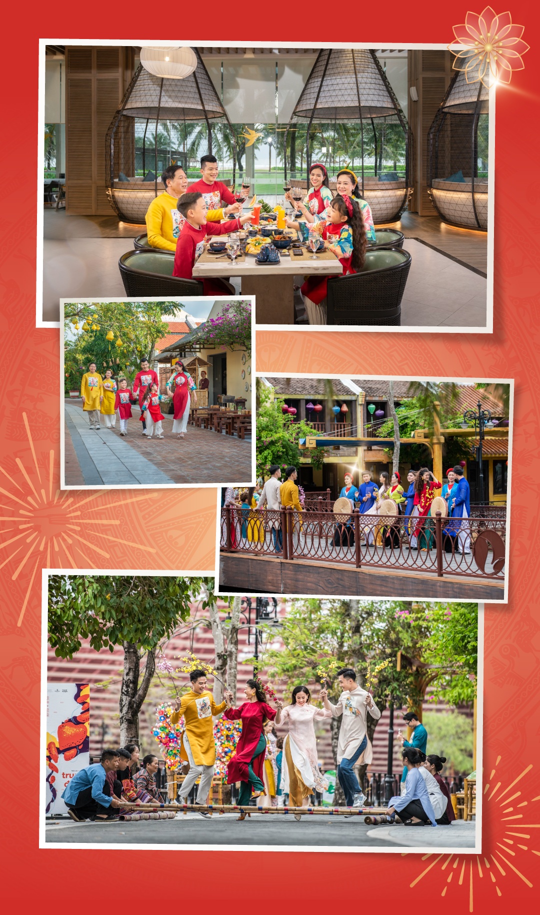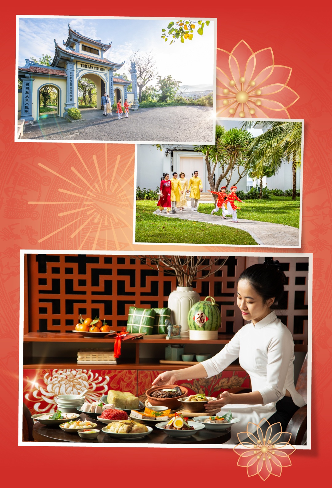 Mâm cơm đoàn viên, bữa tiệc riêng tư tại đây cũng thấm đượm hương xưa, chuẩn vị món ngon của bà, của mẹ từng chăm chút mỗi khi Tết đến. Cùng với đó, đêm nhạc mùa xuân đầy sức sống trên sân khấu ngoài trời, hướng về toà khách sạn mang dáng dấp cánh buồm đôi, hài hoà cùng thiên nhiên khoáng đạt, ẩm thực tinh hoa… hứa hẹn mang đến cho du khách không khí đầu năm mới không thể tuyệt vời hơn.