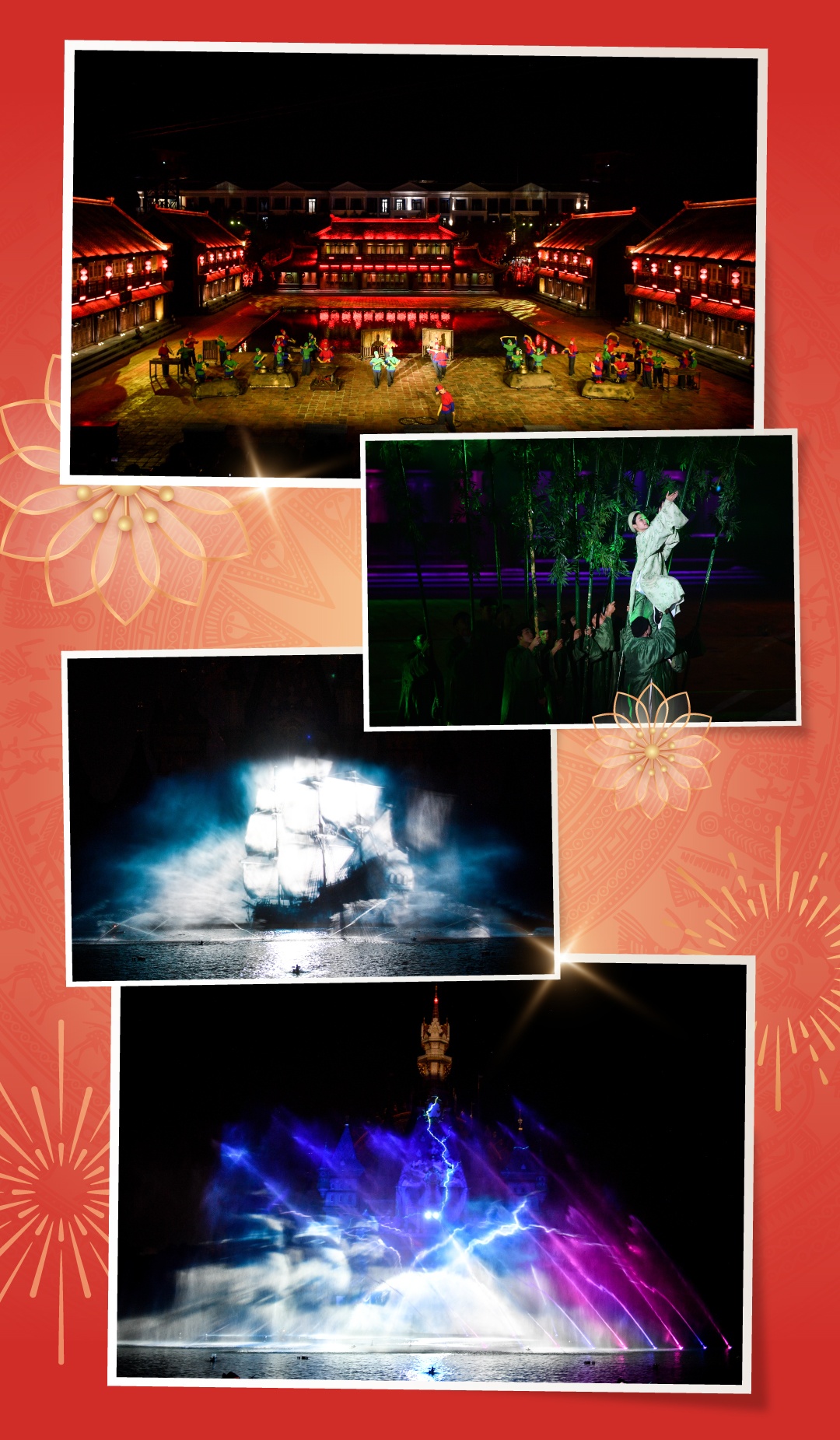 “Thành phố không ngủ” Grand World Phú Quốc luôn rộn ràng với những màn múa lân hoành tráng, vũ điệu “Trống nước khai xuân - Tân niên vạn lộc” mang theo nguyện ước về một năm mới tài lộc dồi dào, thịnh vượng. Khu kinh thành cổ “Tinh hoa Việt Nam” là nơi diễn ra show nghệ thuật đêm giao thừa “Sắc xuân tinh hoa hội tụ”, tái hiện phong tục, nếp sống xa xưa của ông cha như Hội xuân Gia Lạc - phiên chợ Tết sầm uất thời nhà Nguyễn, lễ hội rước đèn lồng, lễ hội hoa đăng…