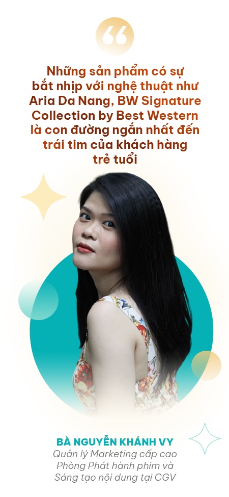 “Là một người luôn đề cao cái đẹp và yếu tố duy mỹ, tôi mong muốn tận hưởng kỳ nghỉ của mình tại Aria Da Nang, BW Signature Collection by Best Western. Hoạt động nhiều năm trong lĩnh vực giải trí hướng đến giới trẻ, tôi nhận thấy những sản phẩm có sự bắt nhịp với nghệ thuật luôn là con đường ngắn nhất đến trái tim của khách hàng trẻ tuổi”, bà Nguyễn Khánh Vy - Quản lý Marketing cấp cao Phòng Phát hành phim và Sáng tạo nội dung tại CGV - chia sẻ.