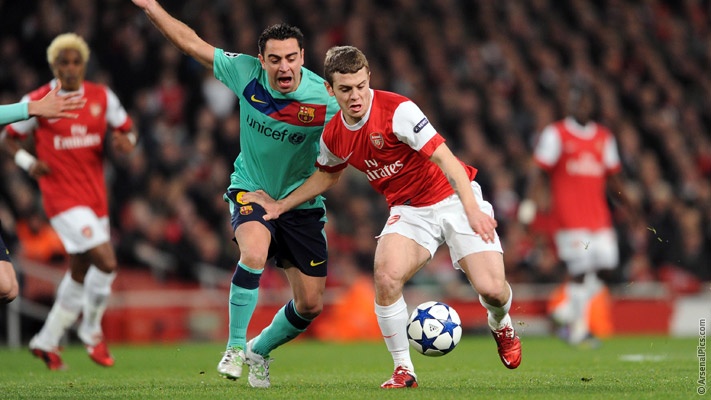 | Jack Wilshere từng chơi tuyệt hay trước Barcelona. Ảnh: Getty. |