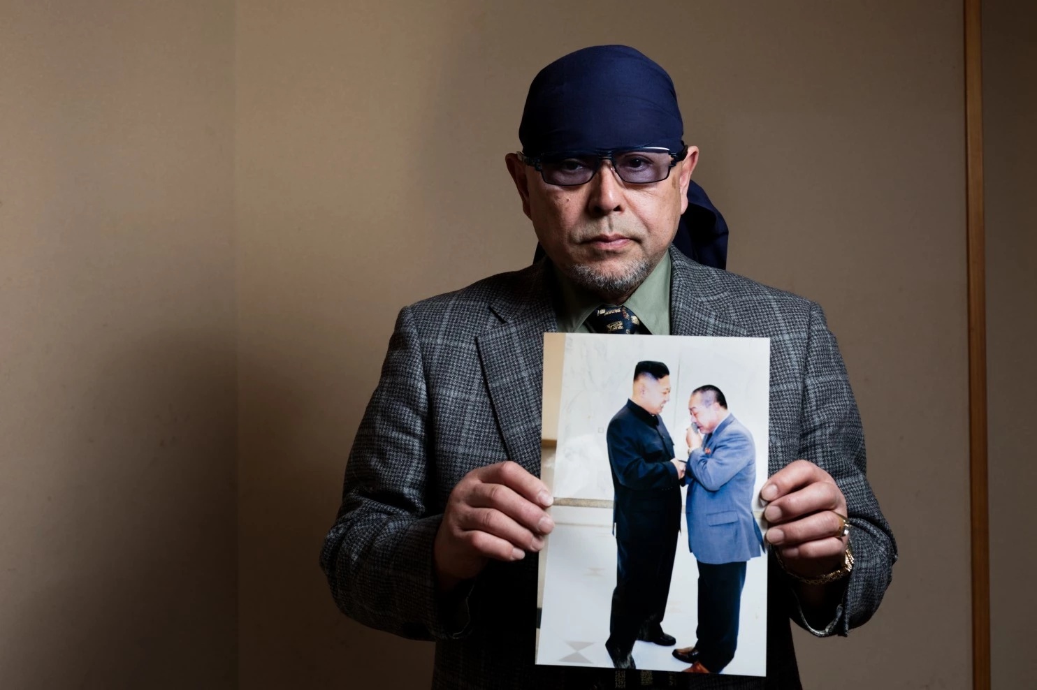 Fujimoto cầm tấm ảnh chụp trong cuộc gặp nhà lãnh đạo Kim Jong Un năm 2012. Ảnh: Washington Post |