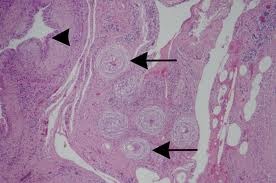 Xét nghiệm tìm thấy trứng sán trong đờm, phân hoặc dịch màng phổi. Chụp Xquang thấy hình ảnh tổn thương phổi.