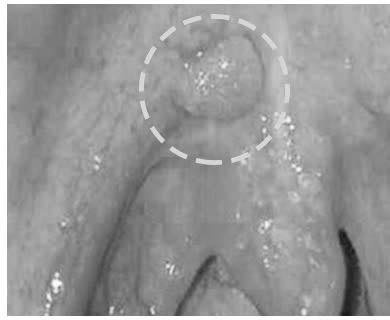 - Khối cứng dưới niêm mạc, không đau, bờ không rõ và có xu hướng lớn dần theo thời gian.
