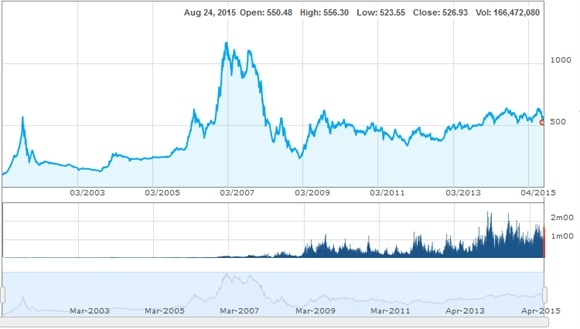 Trong năm nay, thị trường chứng khoán ghi nhận 2 lần lên mức trên 600 điểm, và trong những tháng gần đây đang có xu hướng giảm. Một phần do những tín hiệu không mấy khả thi về thị trường thế giới. Đặc biệt là sự sụt giảm đột ngột trong ngày 24/8, hay còn gọi “ngày thứ hai đen tối” do biến động đột biến trên thị trường Trung Quốc trong ngày hôm đó.