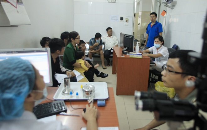 Trong phòng chờ chật kín từ người già đến trẻ em.