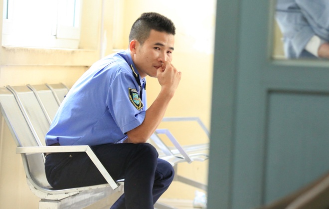 | Nhân viên bảo vệ tại Bệnh viện Mắt Trung ương cũng bị lây từ bệnh nhân khiến đôi mắt anh đỏ hoe. |
