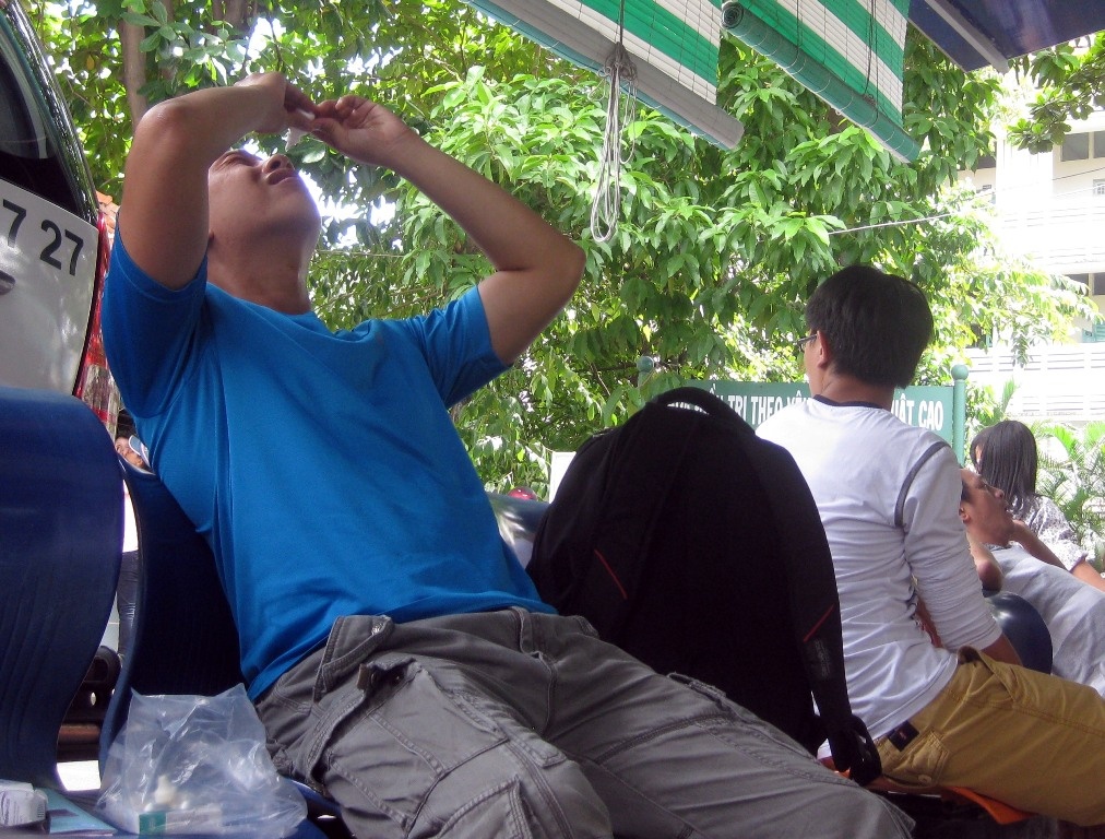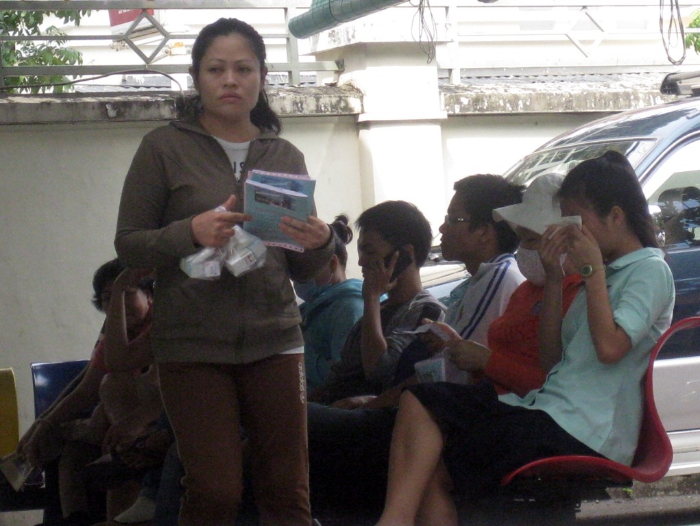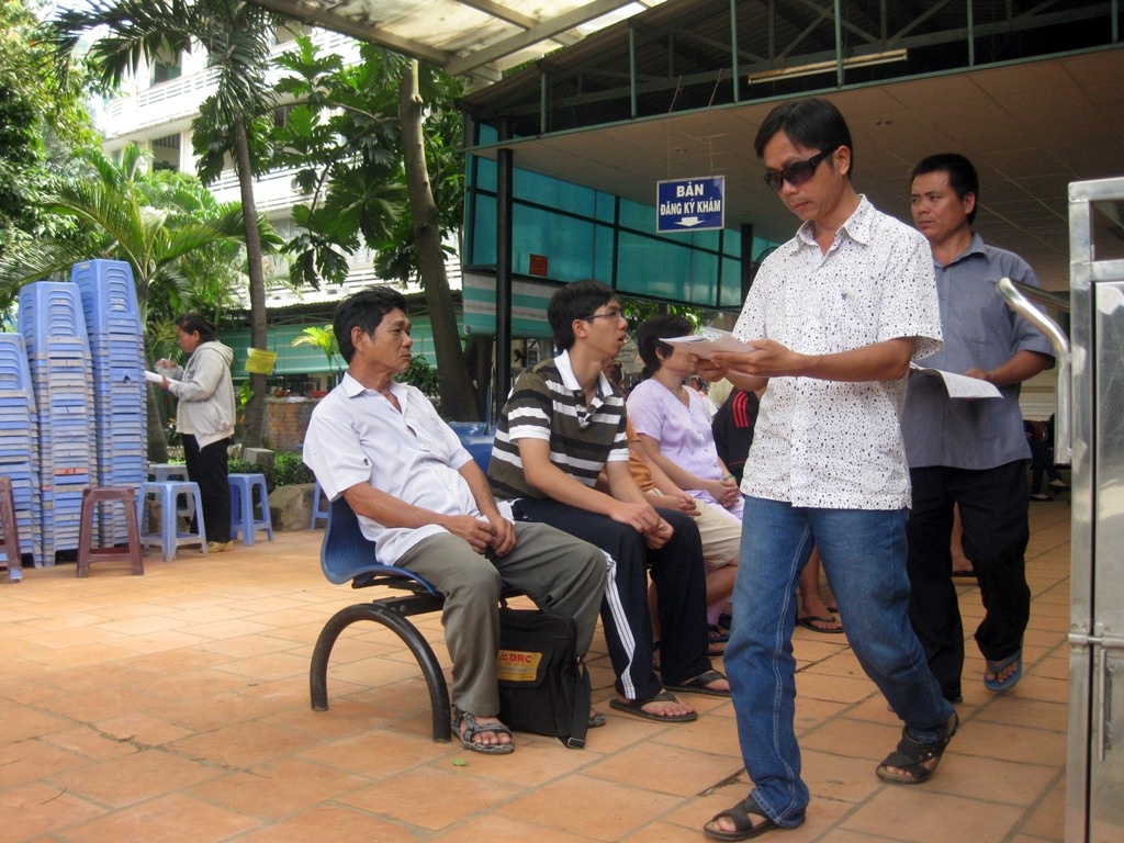 | Mỏi mệt ngồi chờ mua thuốc sau khi khám. |