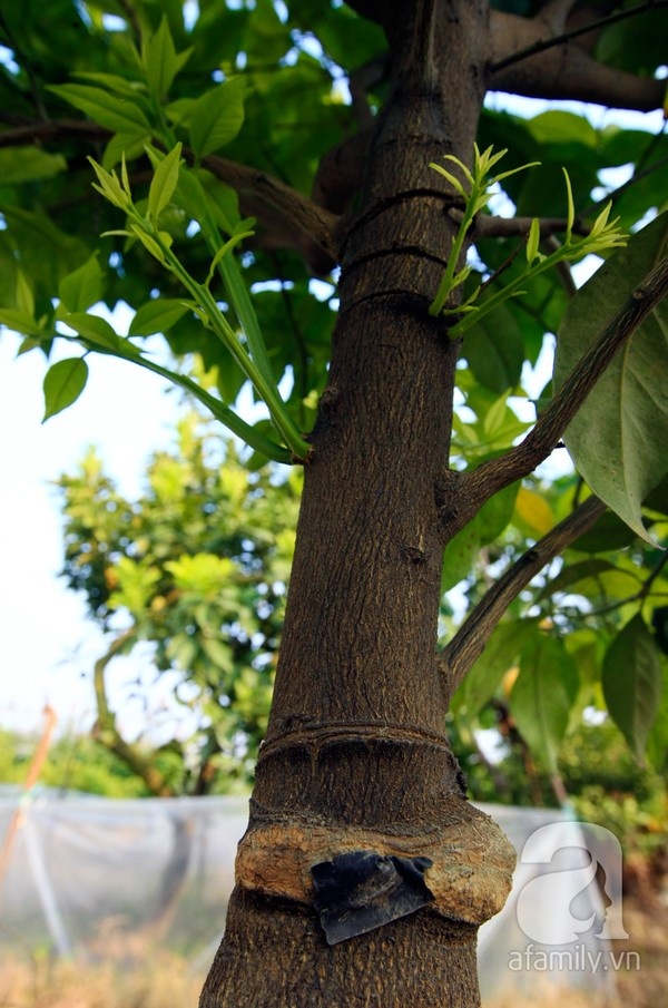 Anh bảo, cùng làm cây ngũ quả nhưng mỗi người sẽ có một bí quyết khác nhau để ghép và chăm cây cũng như có cáí nhìn thẩm mỹ khác nhau. Thay vì ghép quất giống đồng nghiệp, năm ngoái anh Tỉnh ghép cam Canh, bưởi nhăn, bưởi Diễn, quýt xu xoa, phật thủ với nhau vì các quả này có độ cân bằng, phù hợp với dáng to lớn của cây bưởi. Anh cũng ghép quả trực tiếp vào các cành của cây mẹ, thay vì ghép mắt, để linh hoạt, chủ động hơn trong hình dáng tổng thể của cây cũng như có thể “chèn” quả vào giữa thân cây cho lạ mắt.