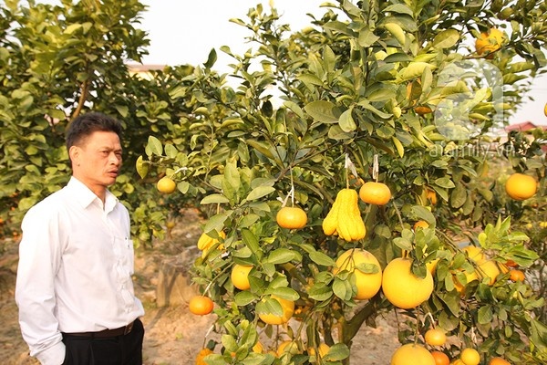 Anh kể, khi làng Ngọc Trục còn thuộc địa phận tỉnh Hà Tây (cũ), anh là Phó Chủ nhiệm Hội sinh vật cảnh Hà Tây. Thời gian này, ngoài trồng cây làm kinh tế, anh cũng mày mò, nghiên cứu ghép thử các loại cây để tạo ra giống mới. “Từ lâu, tôi đã ghép thành công cây cho ra ba loại quả như bưởi Diễn, cam đường, quýt chua, sau đó lại thử ghép bòng không múi với bưởi Diễn và cam đường, đều thành công cả” – anh chia sẻ.