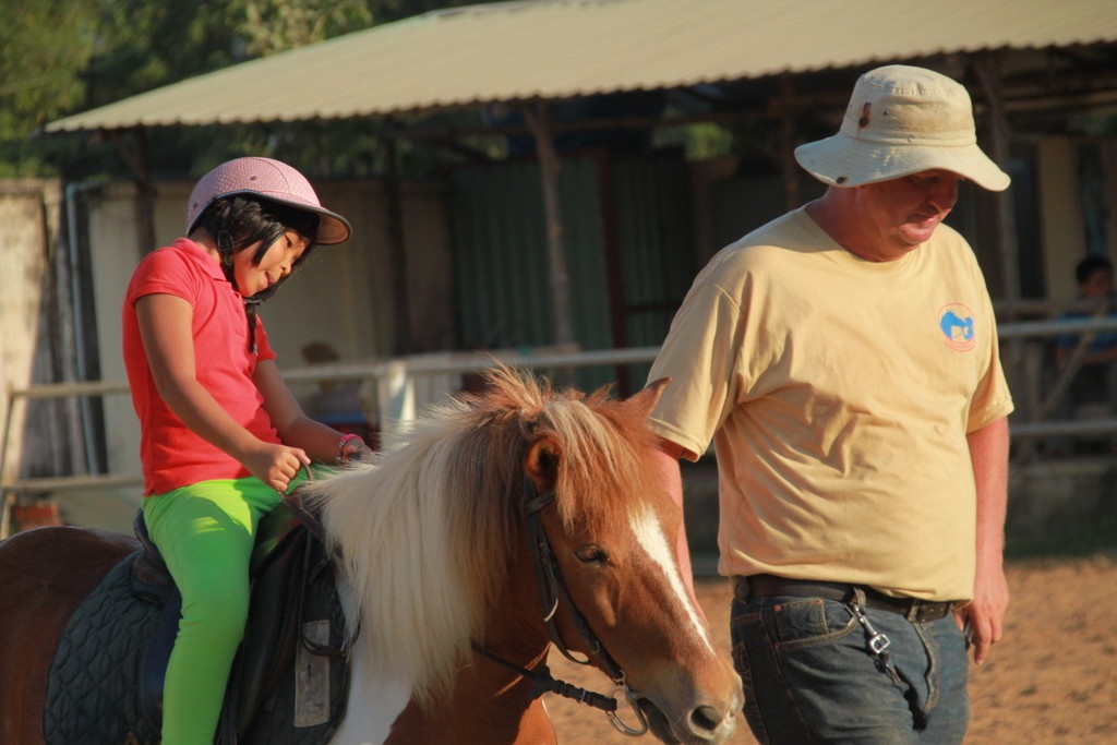 | Ông Amaury Le Blan (người Pháp), chủ CLB hướng dẫn bé Minh Nghi các bài tập cơ bản như cầm cương, giữ ngựa thăng bằng, điều khiển ngựa rẽ phải, rẽ trái... |