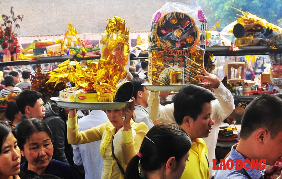 Rất nhiều đồ lễ được người dân mang đến làm lễ.