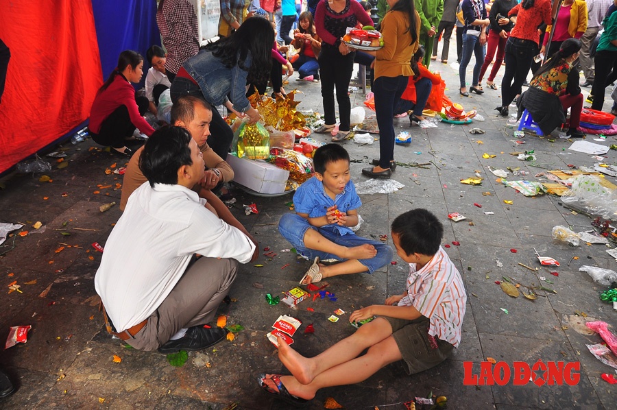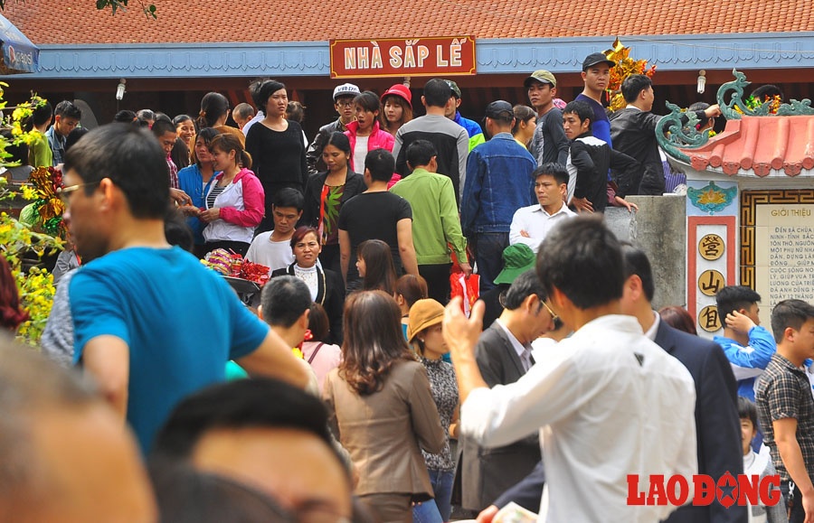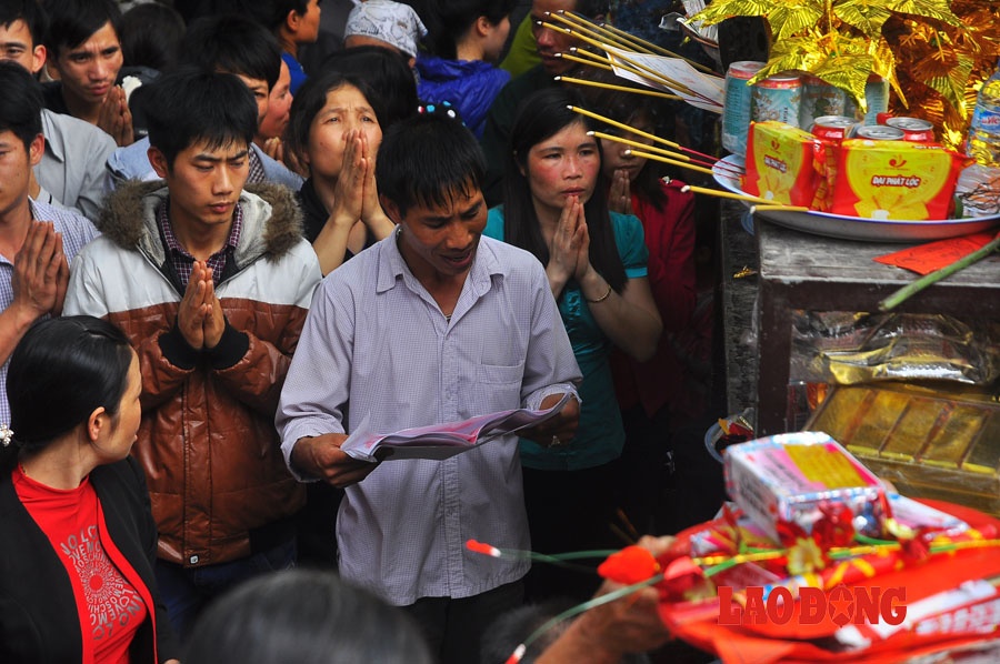 Theo ghi nhận, trong ngày 23/2 (mùng 5 tháng Giêng), khác với những ngày vắng người "trả nợ" cuối năm vừa qua, đền Bà Chúa Kho nườm nượp khách thập phương đến xin làm "con nợ".