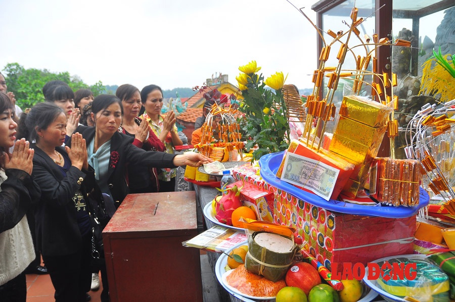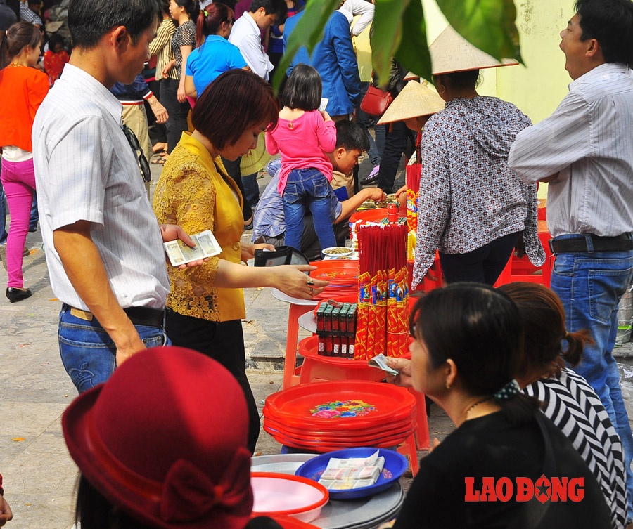 Người dân dùng tiền lẻ để dâng lễ lên đền Bà Chúa Kho rất phổ biến.