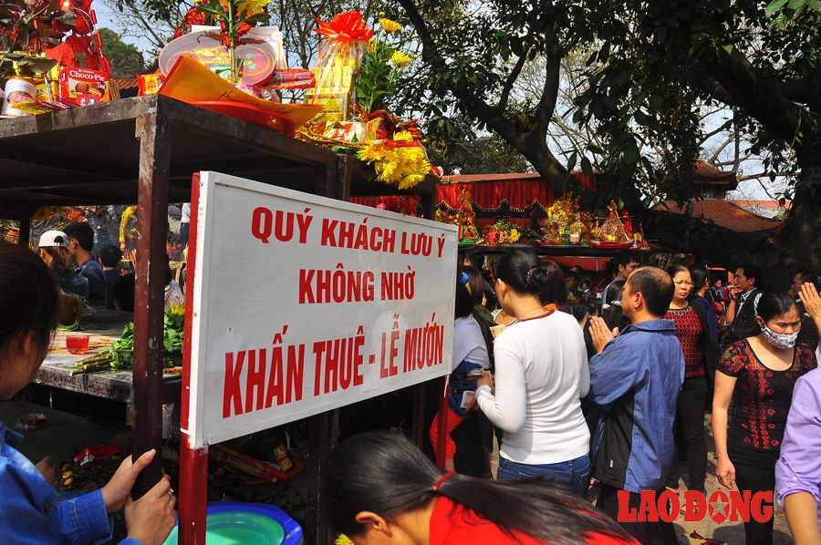 Ban quản lý di tích đền Bà Chúa Kho phải làm biển cảnh báo người dân tình trạng thuê người khấn.
