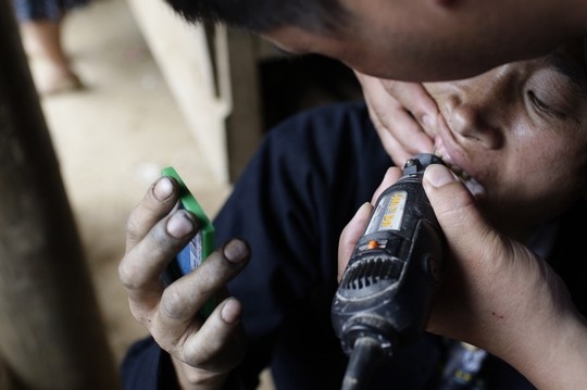 | Nha sĩ ở những phiên chợ này dùng các thiết bị thô sơ, đôi khi là bằng tay trần không cần đi găng. |