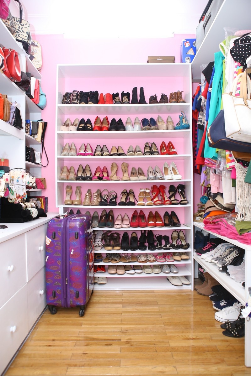 Phòng quần áo của cô không quá rộng, vì thế nhiều phụ kiện và quần áo được cất giữ trong hộp.
