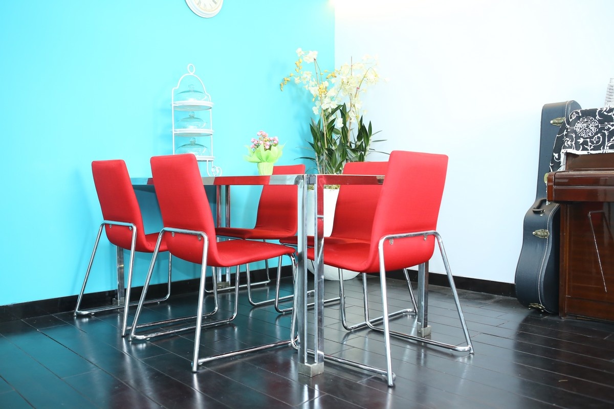 | Khu vực bàn ăn được sắp đặt ngăn nắp. |