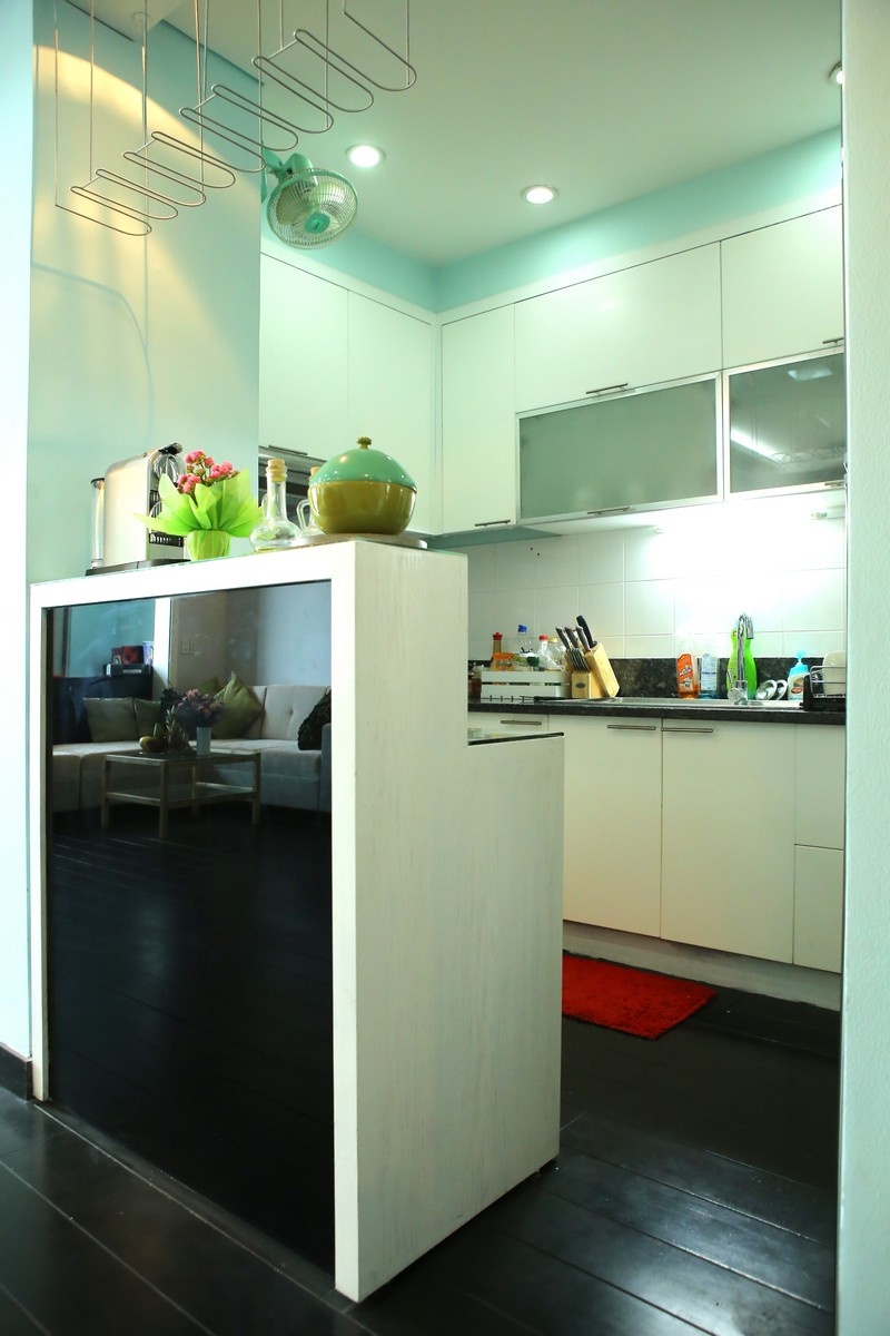 Gian bếp nhỏ xinh, sạch sẽ thuận tiện cho cuộc sống bận rộn của nữ chủ nhân.