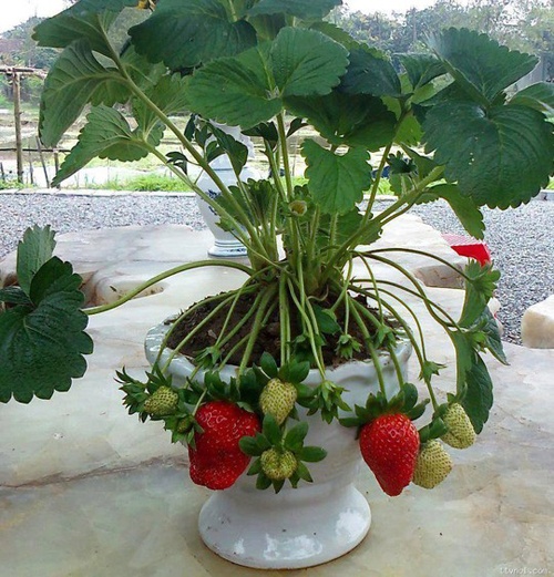 | Dâu tây Đà Lạt vào chậu thành cây cảnh chưng Tết |