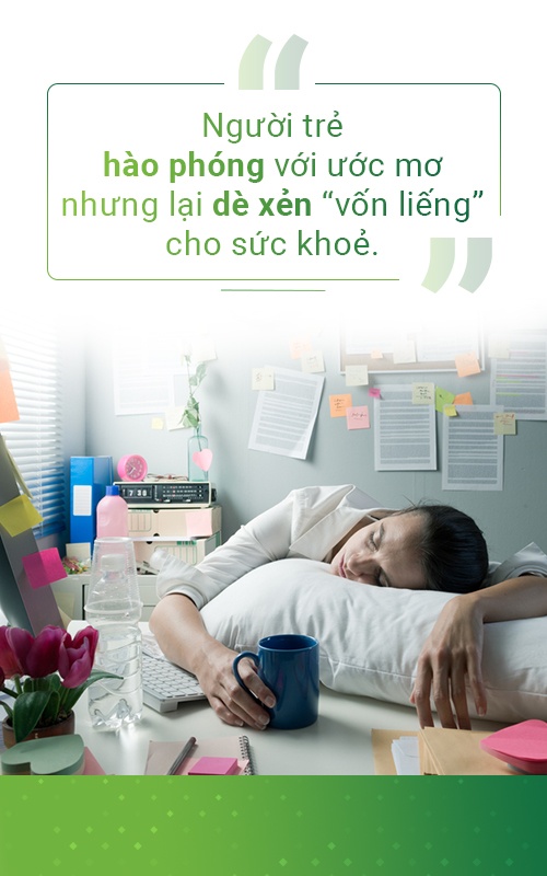 Minh là một trong rất nhiều người trẻ muốn chứng tỏ năng lực, hết mình vì công việc và làm đủ cách để đạt được mục tiêu. Họ hào phóng với ước mơ, củng cố vị thế hay mua nhà ở thành phố, nhưng “vốn liếng” dành cho sức khoẻ lại gần như không có hoặc thậm chí chưa từng xuất hiện trong suy nghĩ.
