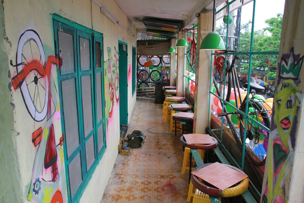 | Tiết kiệm chi phí đầu tư quán cà phê nhờ phụ tùng xe đạp cũ. Ảnh: Ngọc Lan. |