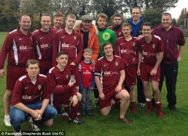 | Beckham thân thiện chụp hình lưu niệm cùng đội bóng Shepherds Bush United. |