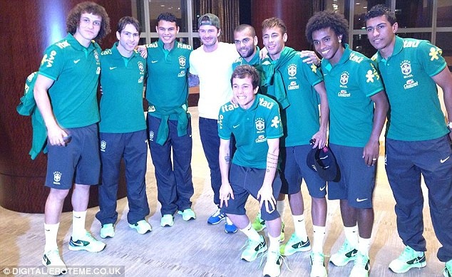 | Beckham chụp ảnh kỷ niệm cùng đội tuyển Brazil. |