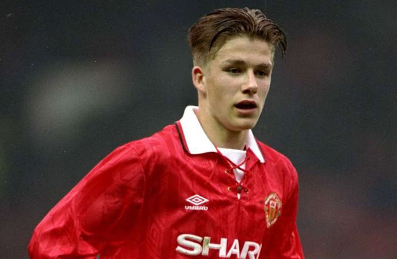 | Beckham gia nhập Man Utd năm 16 tuổi. Ngay mùa đầu tiên, chàng trai chẻ tóc ngôi giữa cùng những đồng đội thuộc "thế hệ vàng 1992" như anh em nhà Neville, Paul Scholes, Nicky Butt giúp Quỷ đỏ giành chức vô địch cúp FA dành cho lứa trẻ. |