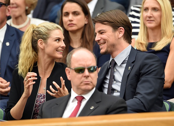 | Nam tài tử Hollywood, Josh Hartnett và bạn gái đang mang bầu Tamsin Egerton trò chuyện vui vẻ trên khán đài. |