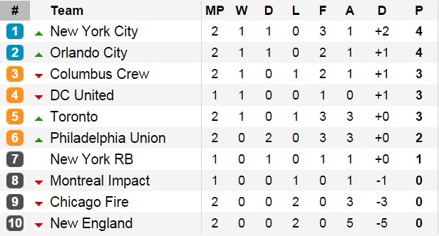 | Bảng xếp hạng miền đông vòng 2 MLS. |