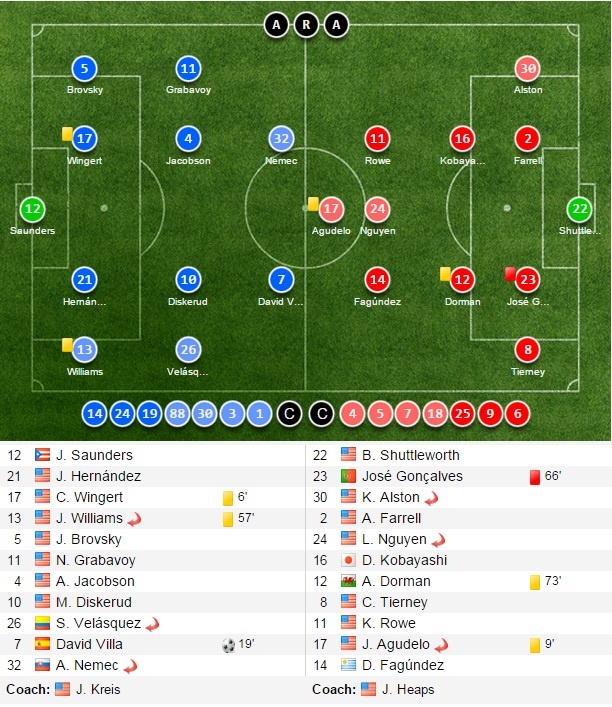 | Kết quả chung cuộc, New York City giành chiến thắng 2-0 trước New England. Đây là chiến thắng đầu tiên của David Villa và đồng đội tại MLS. Trong khi đây là lần thứ 2 liên tiếp đội bóng của Lee Nguyễn rời sân trong cảnh trắng tay. |