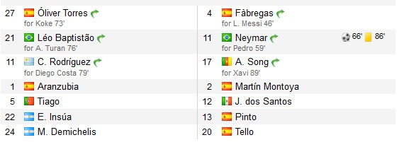 Ghi bàn: David Villa 12’ – Neymar 66’