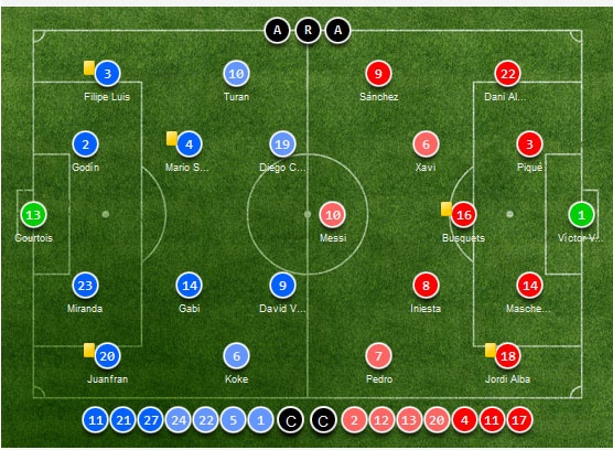 Trước tình hình đó, HLV Tata Martino buộc phải rút Messi ra nghỉ để nhường chỗ cho Fabregas ở đầu hiệp 2. Quyết định thay đổi nhân sự có phần miễn cưỡng của Barca suýt chút nữa phát huy tác dụng ở phút 49. Sau cú sút rất căng nhưng không thành, Sanchez đã chuyền bóng ra cho Fabregas. Trước khung thành rộng mở, F4 đã không thể dứt điểm bởi hậu vệ Atletico băng về cản phá kịp thời.