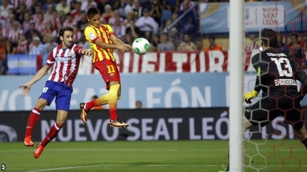 Như để chứng minh mình chưa đến nỗi trở thành người thừa tại Nou Camp, Villa thi đấu với quyết tâm rất cao. Chỉ 12 phút sau giờ bóng lăn, cựu tiền đạo Valencia đã đạt được mục đích. Sau cú tạt bóng của Turan bên cánh trái, Villa liền tung ra cú volley đẳng cấp hạ gục người đồng đội cũ Valdes, qua đó giúp Atletico vươn lên dẫn trước.