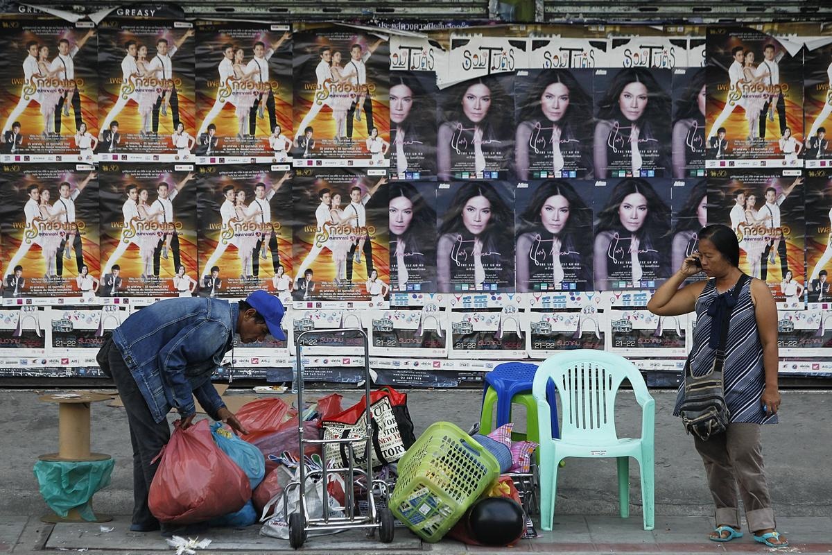 | Hai người biểu tình dọn dẹp đồ đạc để chuyển tới một địa điểm khác ở thành phố Bangkok sau khi người biểu tình giải tán khỏi khu vực này vào ngày 3/2. Ảnh: Reuters |