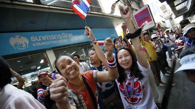 | Hôm nay hàng trăm người bao vây một tòa nhà của chính phủ, nơi Thủ tướng Yingluck Shinawatra và hai bộ trưởng xuất hiện. Họ cắt hàng rào thép gai xung quanh tòa nhà, nhưng người ta không biết bà Yingluck còn ở trong tòa nhà vào thời điểm đó hay không. Ảnh: AP |