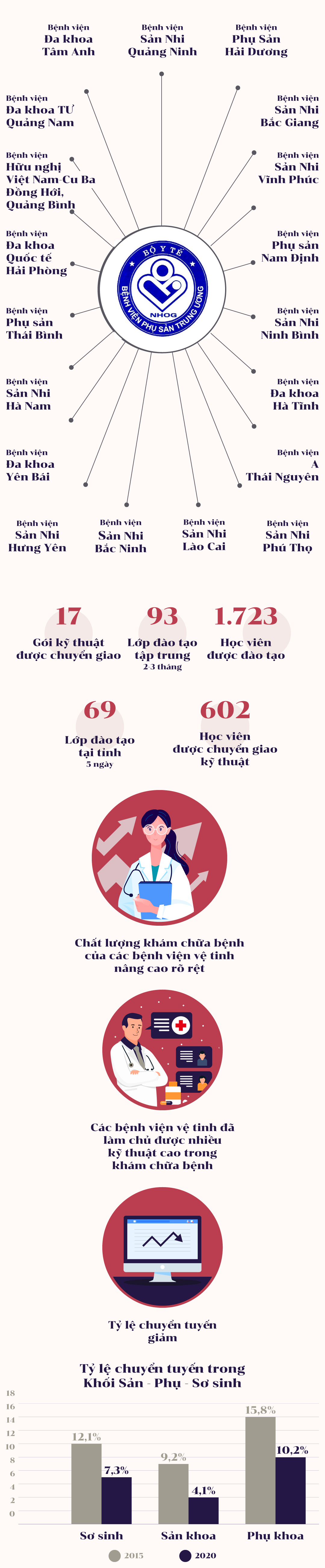 Đề án Bệnh viện vệ tinh chuyên ngành phụ sản được phê duyệt từ năm 2013. Đóng vai trò là bệnh viện hạt nhân, 8 năm qua, Bệnh viện Phụ sản Trung ương đã đào tạo hơn 2.300 học viên.
