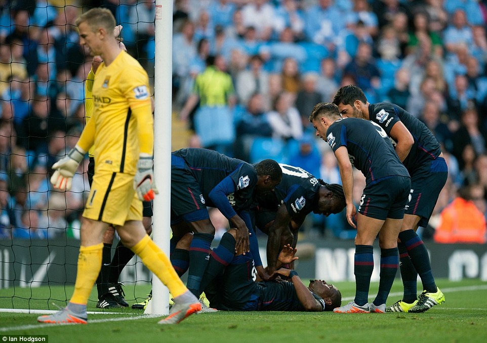 | Sau 5 vòng đầu tiên ở Premier League giữ sạch lưới, thủ môn Joe Hart phải vào lưới nhặt bóng tới 2 lần trong hiệp 1 ở trận gặp West Ham. |