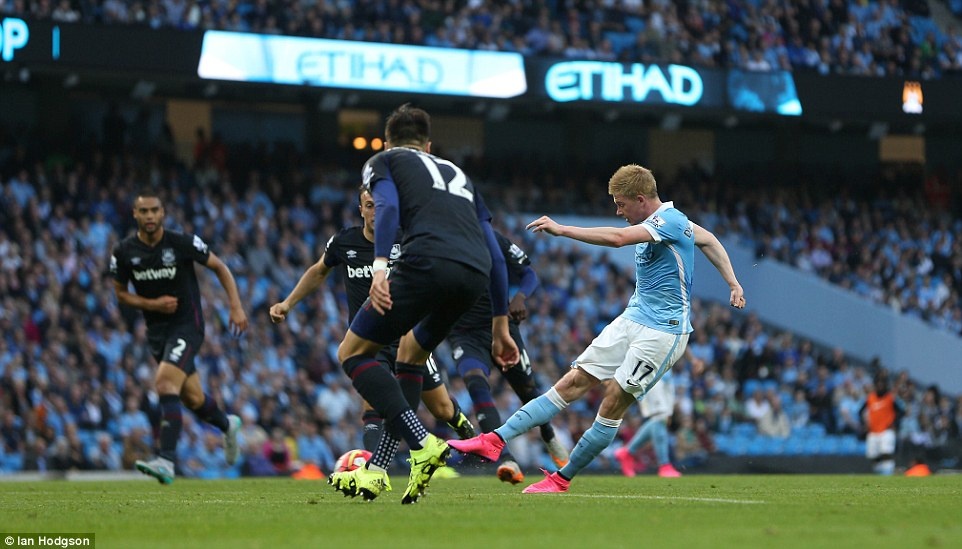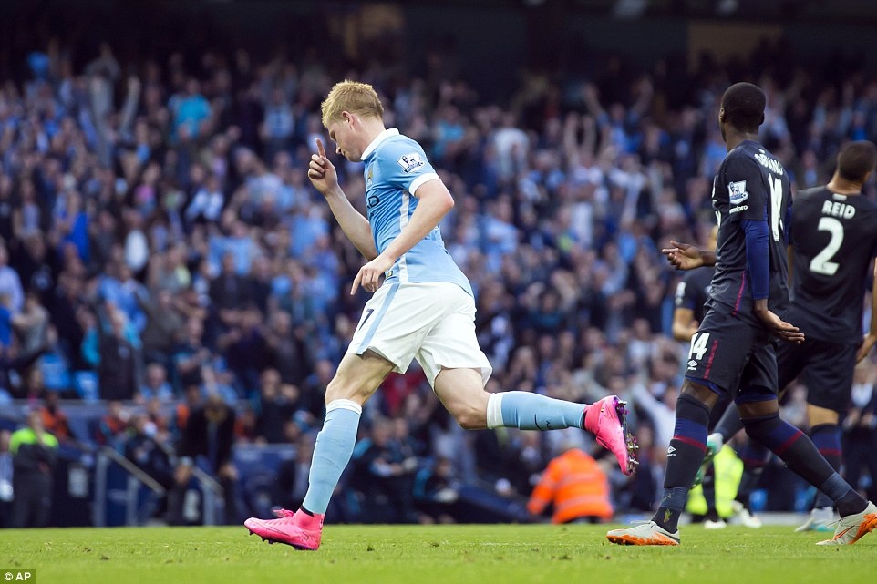 | Tiền vệ người Bỉ ghi bàn đầu tiên cho Man City ở Premier League sau khi chuyển đến sân Etihad với mức phí cao nhất lịch sử đội bóng. |