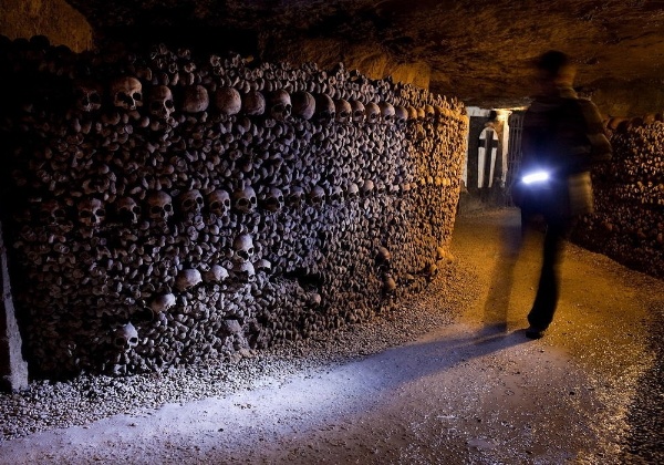 Hệ thống nghĩa địa ngầm này trải dài 321km dưới lòng Thủ đô Paris. Cảnh tượng đáng sợ ở đây đủ để khiến những người can đảm nhất cũng phải run sợ khi mà nhiều hộp sọ xếp dọc theo tường.