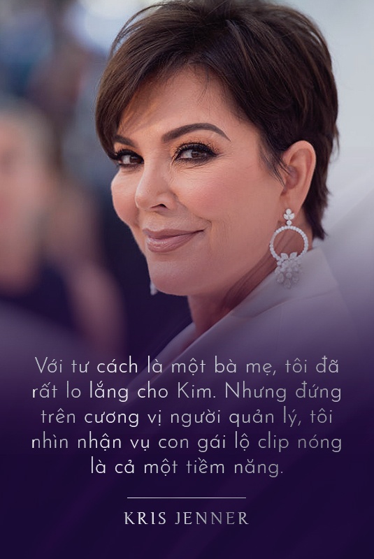 Thật vậy, từ đoạn clip đáng quên của Kim, 6 người phụ nữ nước Mỹ đã một bước đổi đời. Kris Jenner từng thẳng thừng tuyên bố: “Với tư cách là một bà mẹ, tôi đã rất lo lắng cho Kim. Nhưng đứng trên cương vị người quản lý, tôi nhìn nhận vụ con gái lộ clip nóng là cả một tiềm năng”.