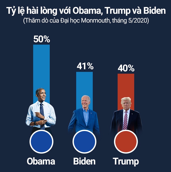 Tỷ lệ hài lòng với ông Obama cao hơn cả hai cái tên trên phiếu bầu tổng thống Mỹ vào tháng 11. Cuộc thăm dò trên cho thấy 41% người Mỹ hài lòng với ông Joe Biden, phó tổng thống thời Obama và là ứng viên tổng thống của phe Dân chủ năm nay. Trong khi đó, tỷ lệ hài lòng với tổng thống đương nhiệm, Donald Trump, là 40%.