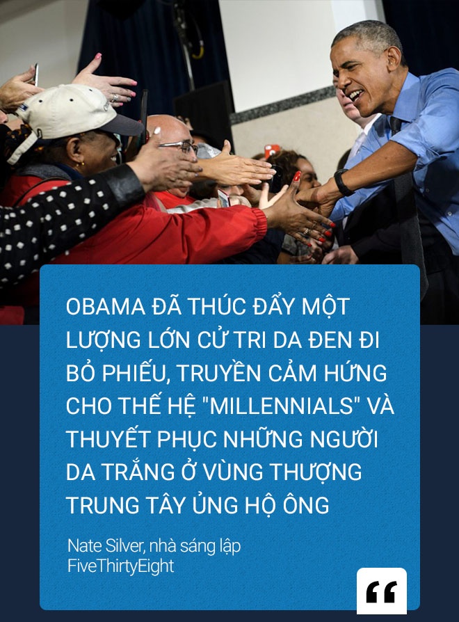 Ông đã thúc đẩy một lượng lớn cử tri da đen đi bỏ phiếu, truyền cảm hứng cho thế hệ "millennials" và thuyết phục những người da trắng ở vùng thượng Trung Tây ủng hộ ông, theo nhà sáng lập FiveThirtyEight Nate Silver.