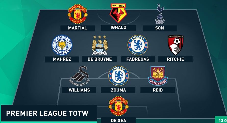 De Gea, Martial vào đội hình tuần hay nhất Premier League