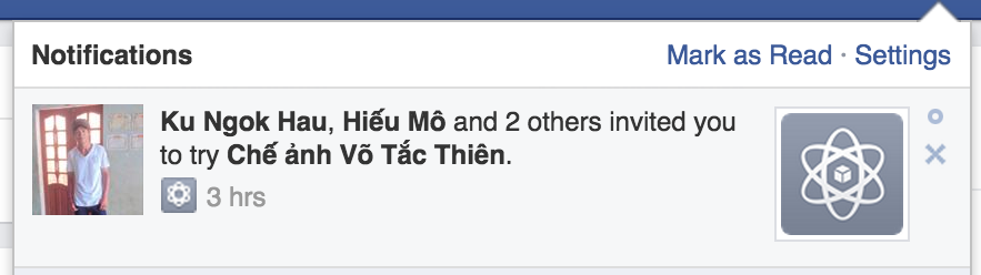 | Lời mời ứng dụng "Chế ảnh Võ Tắc Thiên" từ chính những người dùng đã bị lừa và mất tài khoản Facebook. |