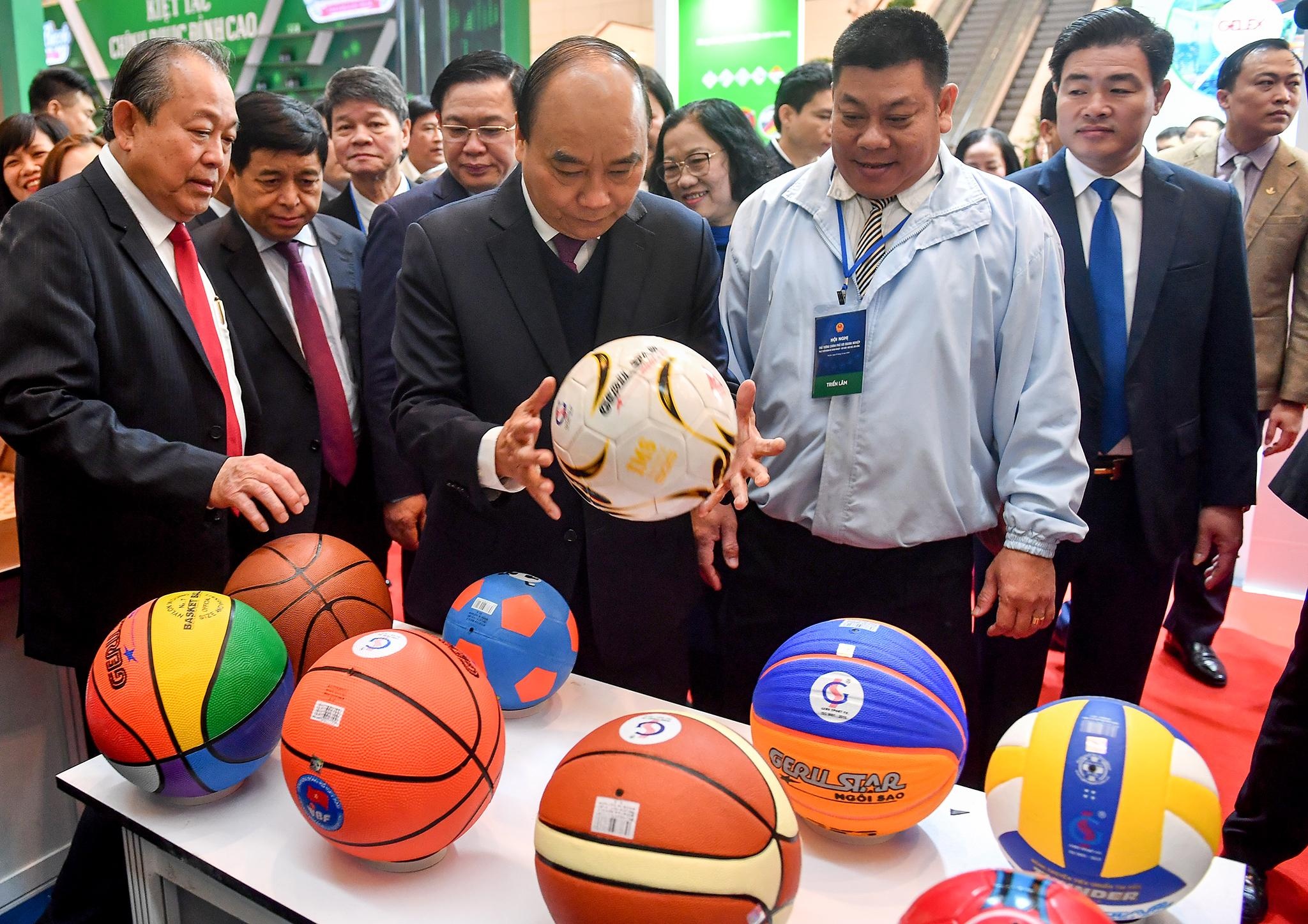 Người đứng đầu Chính phủ mong muốn các doanh nghiệp Việt cần liên kết với nhau, tham gia vào chuỗi cung ứng toàn cầu. Ông lấy ví dụ trước đây Samsung chỉ dùng khoảng 10% các nguyên vật liệu do doanh nghiệp Việt sản xuất trong sản phẩm của mình. Hiện tại, con số tăng lên 45%. Một ví dụ khác là Ôtô Trường Hải đã đạt tỷ lệ nội địa hóa 40%.