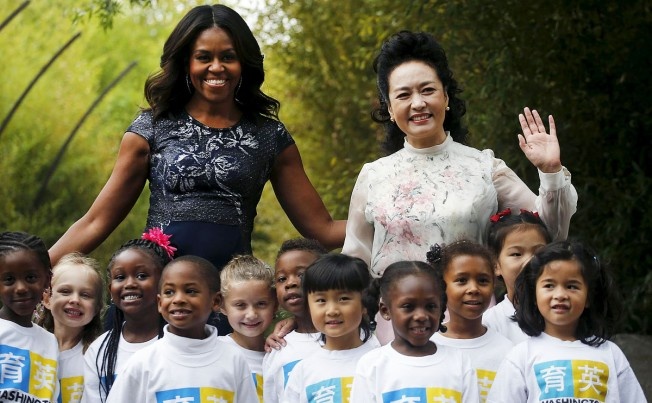 Chuyên gia cho rằng cả bà Michelle và bà Bành đều dùng thời trang là "ngôn ngữ ngoại giao không lời” và là đại diện của nền văn hóa quốc gia. Họ cũng ủng hộ các sản phẩm thiết kế trong nước. Ảnh: Getty