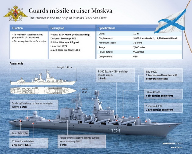 Moskva là tàu đầu tiên trong tổng số 4 tàu tuần dương hạng nặng lớp Slava được đóng theo dự án 1164, được các chuyên gia quân sự phương Tây đánh giá là “đệ nhất tuần dương hạm.”