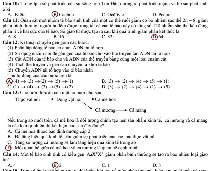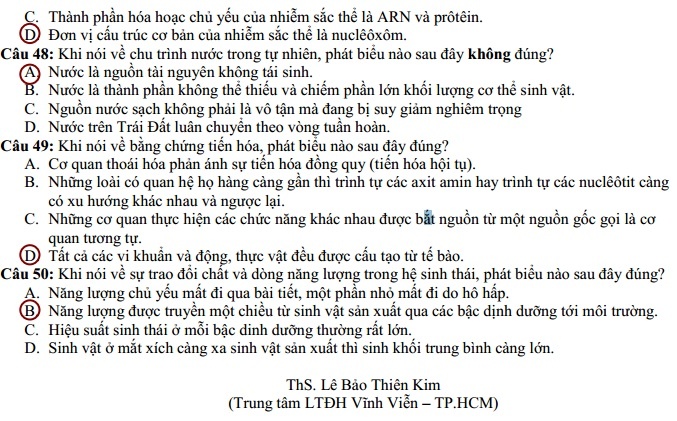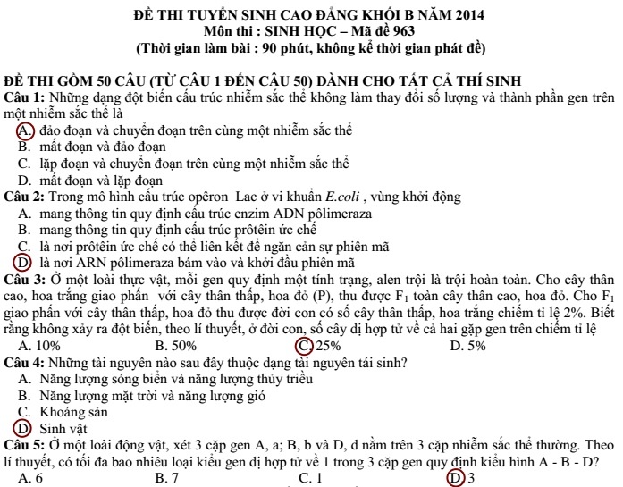 Các thí sinh tham dự kỳ thi cao đẳng đã kết thúc môn thi Sinh học. Dưới đây là đáp án môn thi này do Th.S Lê Bảo Thiên Kim - Trung tâm luyện thi đại học Vĩnh Viễn thực hiện.