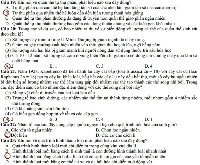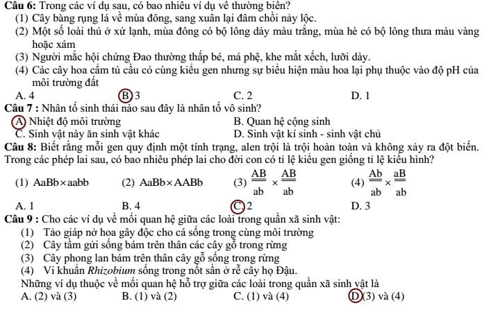 Đề thi và gợi ý đáp án môn Sinh học cao đẳng khối B